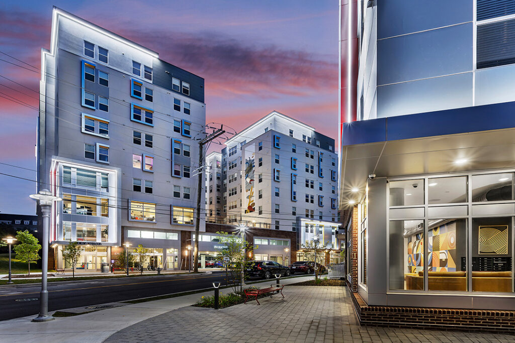 Shared spaces are just as important as private ones in high-density developments. Thoughtfully designed courtyards, rooftop pools and community rooms create opportunities for interaction and connection. At Aspen College Park, public art and vibrant amenity spaces bring residents together while unifying two buildings separated by a roadway.