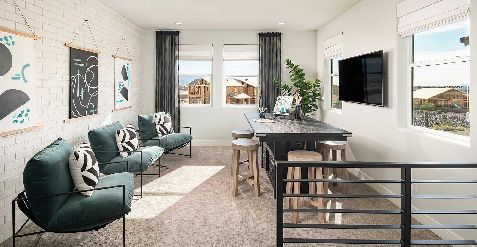 These luxury homes located in a beautiful community feature a mix of farmhouse, modern farmhouse and Spanish architecture styles to reach a wide variety of buyers. Surrounded by mountainous views, focus was placed on designing a seamless flow between the indoor and outdoor living areas. Each floor plan features flex spaces and lofts, giving the household members both plenty of space to host and to enjoy privacy when needed.