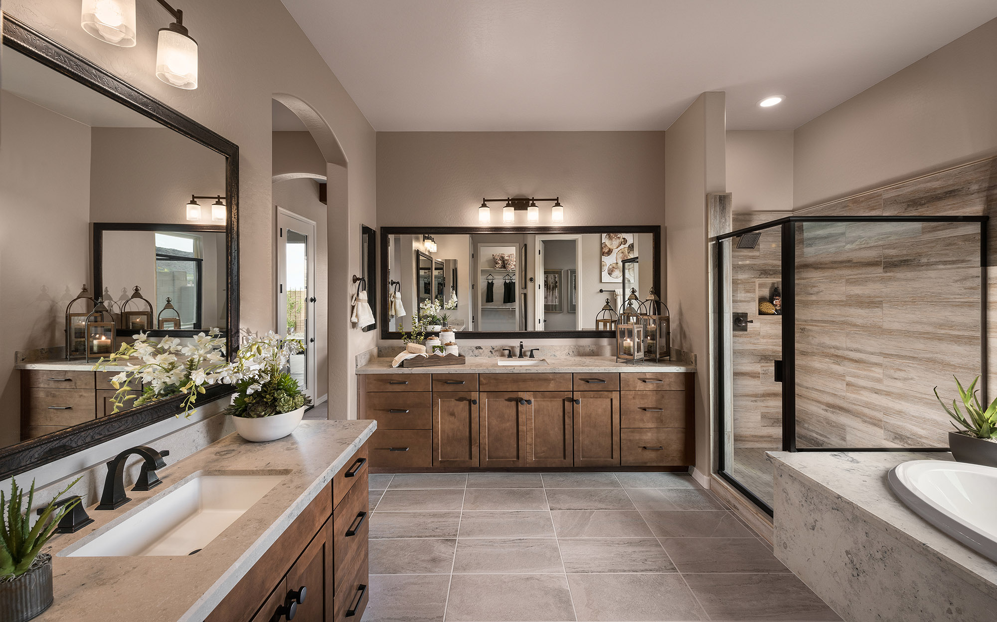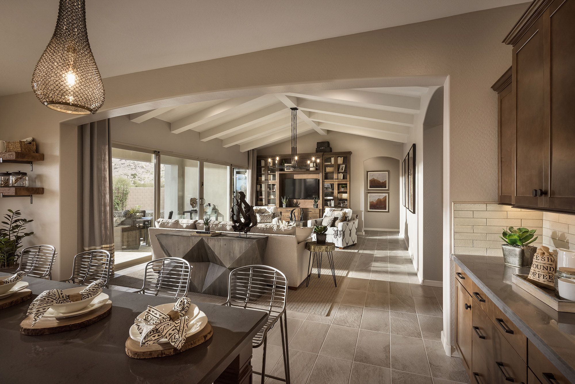 The Turquoise plan was designed to give the active adult market everything they want in a home. The floor plan contains fewer but larger entertaining spaces, fluid indoor/outdoor connections and unique detailing for added character throughout the home. The large four-car tandem garage is perfect for storage or extra space for a golf cart. Residents can enjoy an outdoor lifestyle within walking distance of one of the largest municipal parks in the United States.