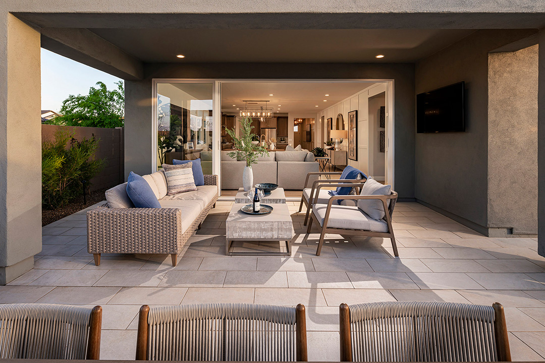 The Kingsmill model is a Craftsman-style home that is bright yet cozy. When you walk in the front door, you get a clear view straight to the stunning outdoor area. The main living spaces are seamlessly connected, making it great for entertaining. Outside features a covered patio, dining area and a shallow relaxation pool.
